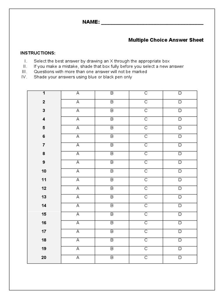 Multiple Choice Answer Sheet Pdf