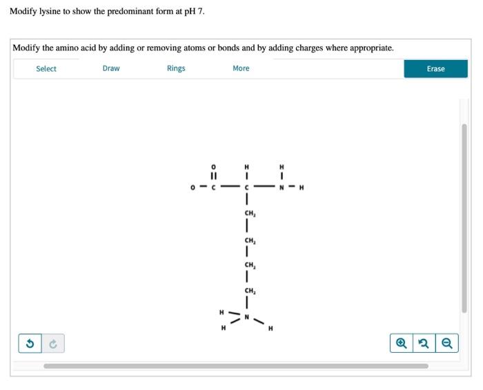 Modify lysine, below, to show the predominant form at pH 7. Quizlet