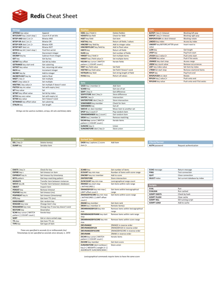 Redis cheatsheets This is a redis quick reference cheat sheet that